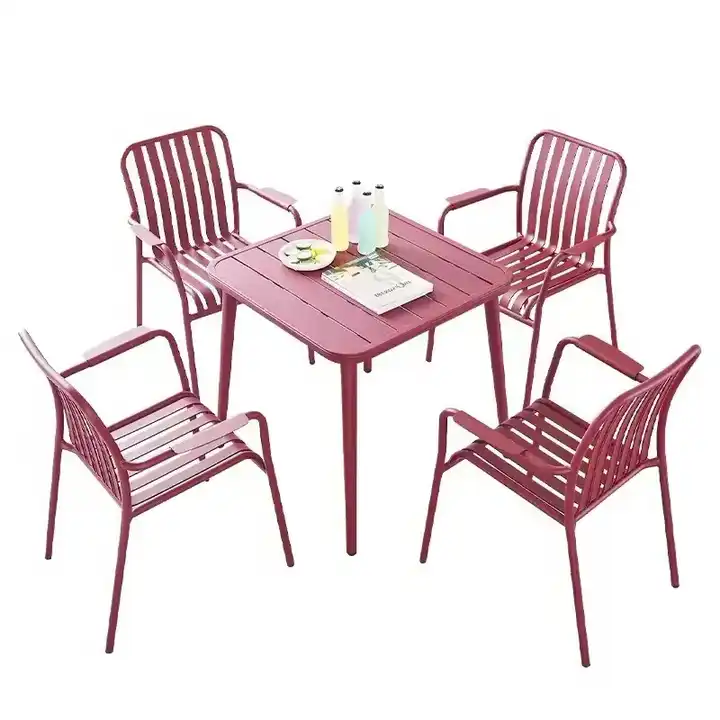 Dārza krēsls āra terasei dekorētu mēbeļu komplekts metāla mājas mēbeļu krēsls un galda komplekts