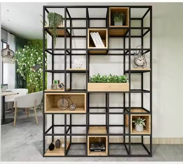 Grezs, elegants metāla rāmja displeja plaukts grāmatu skapju, puķupodu dekorēšanai birojiem, dzīvojamām istabām,..