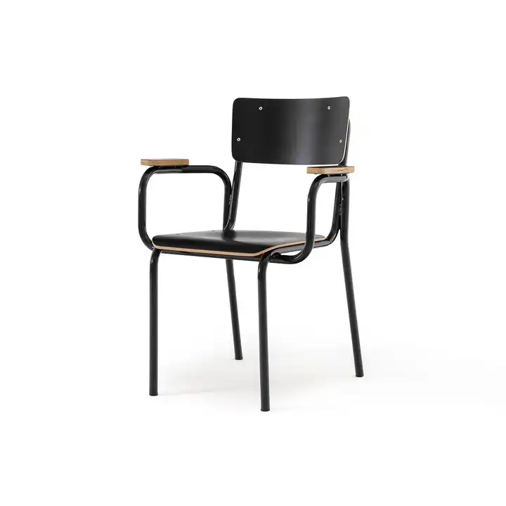 Iekštelpu moderna gluda mājas mēbele ēdamistabai ēdamistabas krēsli ar sakraujamu dizainu, metāla rāmi un koka sēdēm