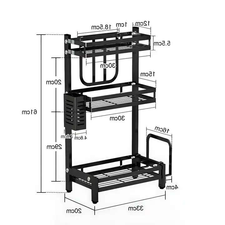 Moderna dizaina metāla rāmja virtuves plaukts, kompakts un ērts uzglabāšanas plaukts vīnam, alkoholam, garšvielām un virtuves piederumiem