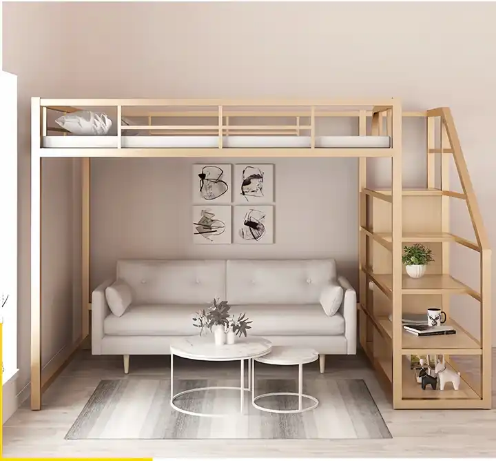Moderna luksusa dizaina kāpņu gulta vietas taupošs metāla rāmis guļamistabas mēbeles mājai birojam viesnīcai