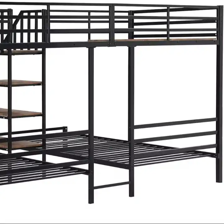 Mūsdienīga dizaina iekštelpu guļamistabas mājas mēbeles metāla rāmis trīsstāvīga gulta piemērota pieaugušajiem modernā mājsaimniecībā un dzīvoklī