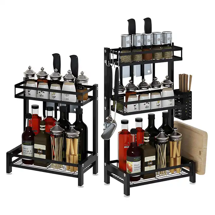 Mūsdienīga dizaina metāla rāmja kompakta un ērta glabāšanas plaukts vīna, alkoholisko dzērienu, garšvielu un virtuves instrumentu plauktu virtuvei.