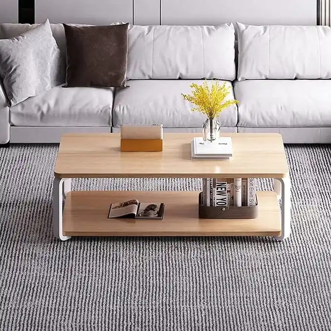 Mūsdienīgs dizains metāla rāmis koksnes virsma kafijas galdiņš mājas dekorēšanai iekštelpu viesistabas mēbeles