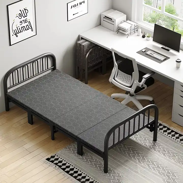 Vairāku izmēru moderna vienkārša salokāma dizaina mēbeles guļamistabai iekštelpu metāla vienvietīga gulta mājsaimniecībai metāla materiāls