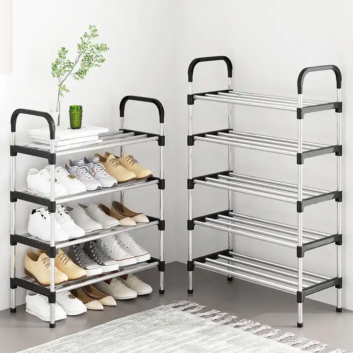 Sapateira moderna em camadas de plástico e metal para sala de estar, dormitório, escritório em casa