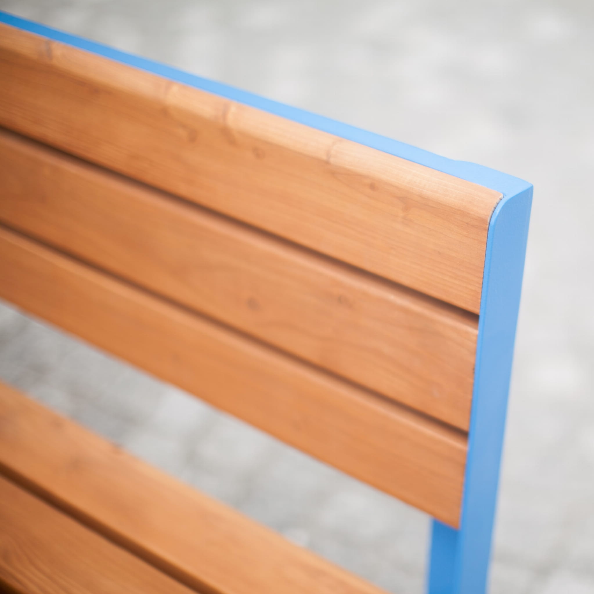 S precíznou výrobou, rám lavičky je vyrobený z prvotriednej ocele s práškovým náterom, ktorá je známa svojou vynikajúcou odolnosťou. Tento materiál dokáže čeliť nepriaznivým vplyvom počasia, pričom si po mnoho rokov zachová svoju pôvodnú eleganciu. Na príjemné a útulné sedenie slúži drevo z modrina, ktoré poskytuje teplý, prirodzený pocit a vytvára elegantný kontrast so studeným kovom.