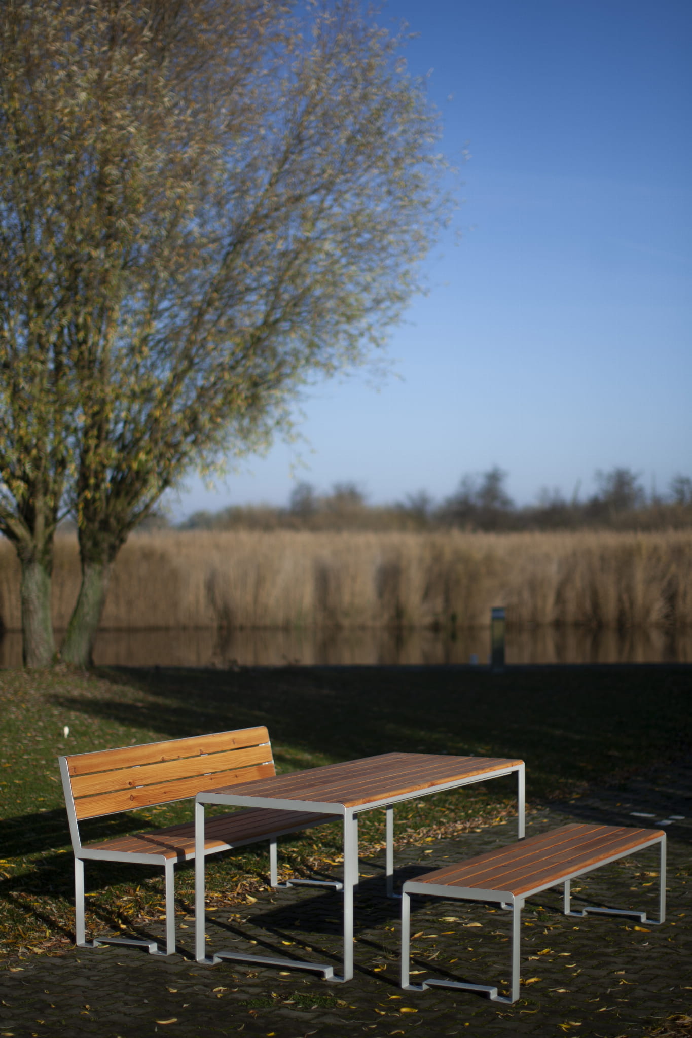 Vyrobená z prémiových materiálov, akými sú modrínové drevo a práškovane lakovaná oceľ, lavička garantuje odolnosť proti poveternostným podmienkam pri zachovaní svojho štýlového a súčasného vzhľadu. Materiály boli vybrané nielen pre svoju trvanlivosť, ale aj pre schopnosť elegantne starnúť, čo zabezpečuje, že lavička bude po mnohé roky ozdobou verejných priestorov.