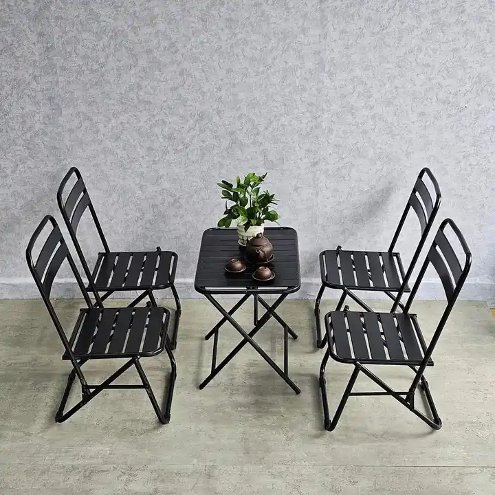 Moderná súprava nábytku - stôl a stoličky pre vonkajšie kaviarne, záhradný jedálenský stôl a súprava stoličiek