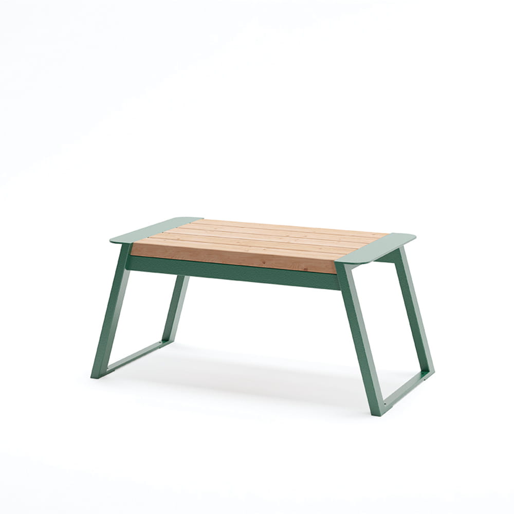 (Rozmery: Výška - 53 cm, Šírka sedacej časti - 45 cm, Celková šírka - 100 cm. Materiály: Modřín, práškovo lakovaná oceľ. Váha: 45 kg.)